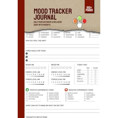 Mood Tracker Journal: Daily Notebook & Wellness Diary with Prompts Mental Health