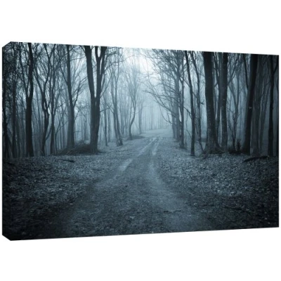 Dark and mysterious forest with grey blue overtone Quality Canvas print, hand stretched around a wooden frame, manufactured in the UK by MOOL Printed on High Quality Waterproof Canvas and coated with protective varnish to inhibit Ultra Violet fade and yellowing of your canvas Comes complete with taped backing and hanger to make mounting your canvas quick and easy Size 32 x 22-inch