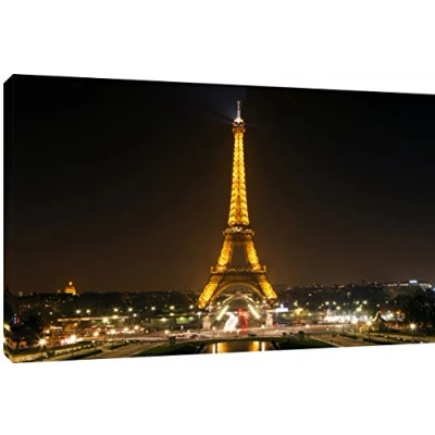 Paris eiffel tower at night Quality Canvas print, hand stretched around a wooden frame, manufactured in the UK by MOOL Printed on High Quality Waterproof Canvas and coated with protective varnish to inhibit Ultra Violet fade and yellowing of your canvas Comes complete with taped backing and hanger to make mounting your canvas quick and easy Size 32" x 22" x 0.71" (81cm x 56cm x 2cm)