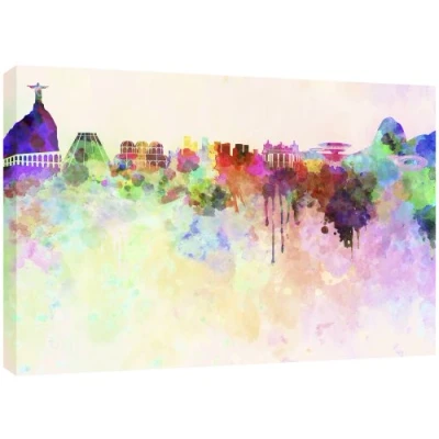 MOOL 32 x 22 inch Rio de Janeiro Skyline in Watercolour Canvas Wall Art Print, Multi Colour