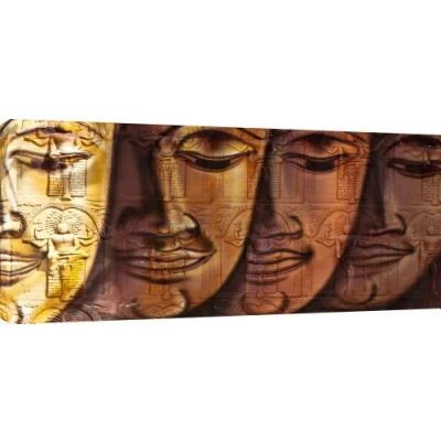 Extra wide Panoramic photo of a Golden brown Buddha head montage Quality Canvas print, hand stretched around a wooden frame, manufactured in the UK by MOOL Printed on High Quality Waterproof Canvas and coated with protective varnish to inhibit Ultra Violet fade and yellowing of your canvas Comes complete with taped backing and hanger to make mounting your canvas quick and easy Size 42" x 20" x 0.71" (106cm x 51cm x 2cm)