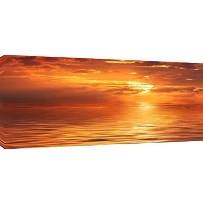 Extra wide Panoramic photo Abstract ocean and glorious sunrise. Quality Canvas print, hand stretched around a wooden frame, manufactured in the UK by MOOL Printed on High Quality Waterproof Canvas and coated with protective varnish to inhibit Ultra Violet fade and yellowing of your canvas Comes complete with taped backing and hanger to make mounting your canvas quick and easy Size 42" x 20" x 0.71" (106cm x 51cm x 2cm)