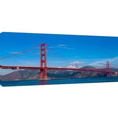 Extra wide Panoramic photo of the Golden Gate Bridge in San Francisco, California. Quality Canvas print, hand stretched around a wooden frame, manufactured in the UK by MOOL Printed on High Quality Waterproof Canvas and coated with protective varnish to inhibit Ultra Violet fade and yellowing of your canvas Comes complete with taped backing and hanger to make mounting your canvas quick and easy Size 42" x 20" x 0.71" (106cm x 51cm x 2cm)
