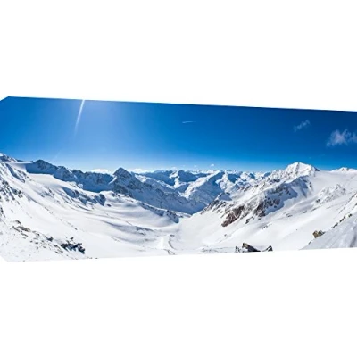 Extra wide Panoramic photo of a Snow Mountain Quality Canvas print, hand stretched around a wooden frame, manufactured in the UK by MOOL Printed on High Quality Waterproof Canvas and coated with protective varnish to inhibit Ultra Violet fade and yellowing of your canvas Comes complete with taped backing and hanger to make mounting your canvas quick and easy Size 42" x 20" x 0.71" (106cm x 51cm x 2cm)