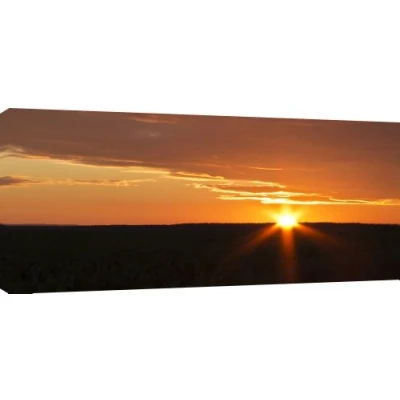 Extra wide Panoramic photo of a Golden sun setting in the horizon Quality Canvas print, hand stretched around a wooden frame, manufactured in the UK by MOOL Printed on High Quality Waterproof Canvas and coated with protective varnish to inhibit Ultra Violet fade and yellowing of your canvas Comes complete with taped backing and hanger to make mounting your canvas quick and easy Size 42" x 20" x 0.71" (106cm x 51cm x 2cm)