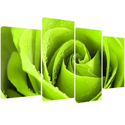 MOOL 51 x 28 Inch Large 4 Piece "Beautiful photo of a single lime green rose flower head with fresh water rain drops" Panel Canvas Print Ready to Hang