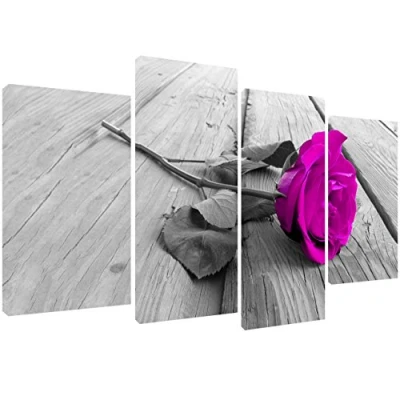 MOOL 51 x 28 Inch Large 4 Piece "Beautiful Romantic subtle purple rose picture with a stunning antique effect" Panel Canvas Print Ready to Hang