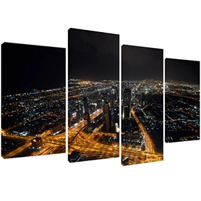 MOOL 51 x 28 Inch Large 4 Piece Dubai at night atop the Burj Khailfa. Panel Canvas Print Ready to Hang