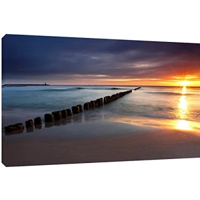 Beautiful sunrise at baltic beach in Poland - Hel - Wladyslawowo Quality Canvas print, hand stretched around a wooden frame, manufactured in the UK by MOOL Printed on High Quality Waterproof Canvas and coated with protective varnish to inhibit Ultra Violet fade and yellowing of your canvas Comes complete with taped backing and hanger to make mounting your canvas quick and easy Size 32” x 22” x 0.71” (81cm x 56cm x 2cm)