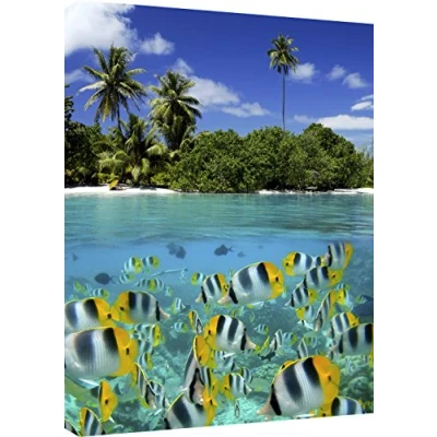 Fish on a coral reef in a tropical lagoon - Tahiti in French Polynesia in the South Pacific Ocean Quality Canvas print, hand stretched around a wooden frame, manufactured in the UK by MOOL Printed on High Quality Waterproof Canvas and coated with protective varnish to inhibit Ultra Violet fade and yellowing of your canvas Comes complete with taped backing and hanger to make mounting your canvas quick and easy Size 32” x 22” x 0.71” (81cm x 56cm x 2cm)