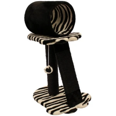 This great value cat scratcher is a fantastic way for your cat to play indoors without damaging your furniture. it comes complete with a tube from which your cat can survey its surroundings, crawl through or simply have a relaxing nap and a ball to claw at if it fancies a bit of fun. As well as the scratching post this also has a large sisal mat that will really give your cat something to get it's claws into! it's finished it a hardwearing plush black and white fabric too. Helps protect your carpets and furniture from cats natural scratching instincts whilst providing a fun and safe environment for them to play and rest. this is suitable for cats of all ages too. Product size: 35 x 40 x 68cm Tunnel hole diameter 19cm
