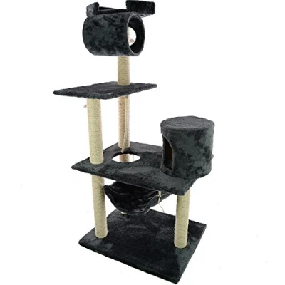 Mool Deluxe Cat Activity Centre and Scratching Tree/ Post with Multiple Hidey Holes/ Viewing Platforms Comfy Hamak Bed, Large, 158 cm, Grey