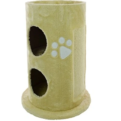 Mool's deluxe cat tree comes complete with 2 hidey holes for your cat to play or sleep inside and a viewing platform on the top. This fantastic cat tree is a great way to keep your cat entertained and comes in a beige plush fabric with designer paw motif too. It has a hardwearing sisal insert on the stylish curved section for your cat to scratch at. Helps protect your carpets and furniture from cats natural scratching instincts. this is suitable for cats of all ages too. Product size: 58 x 45cm (22.8 x 17.7 inches)
