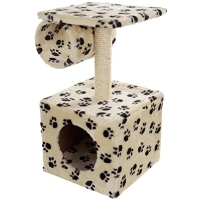 Mool's deluxe cat scratching post comes complete with a large hidey hole in the base which your cat will love. There's a large viewing post to the top which has a strong sisal scratching post beneath. The post also has a tunnel for your cat to crawl through and is covered in a plush beige fabric with paw print motif. Helps protect your carpets and furniture from cats natural scratching instincts. this is suitable for cats of all ages too. Product size: 31 x 31 x 58cm (12.2 x 12.2 x 22.8 inches)