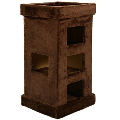 Mool Deluxe Rectangular Fun Cat Scratching Tree/Post Hideaway with Viewing Platform/Bed, 74 cm, Dark Brown