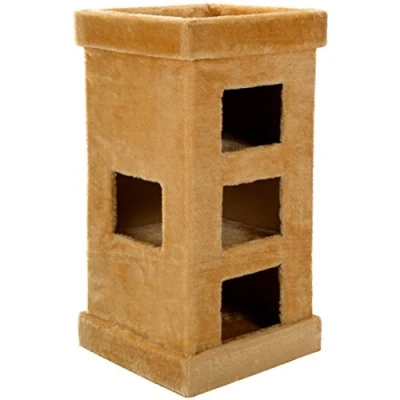Cats love climbing and hiding so what better way than this lovely plush hideaway. there are numerous holes where they can climb in and peep out, they can even be used like rungs on a ladder to reach the flat top where they can relax. Made from a hardwearing golden sand material and with a sturdy rectangular base for added stability. Helps protect your carpets and furniture from cats natural scratching instincts whilst providing a fun and safe environment for them to play. this is suitable for cats of all ages too. Product size: 41 x 41 x 74cm Holes are: 19.5cm x 14cm