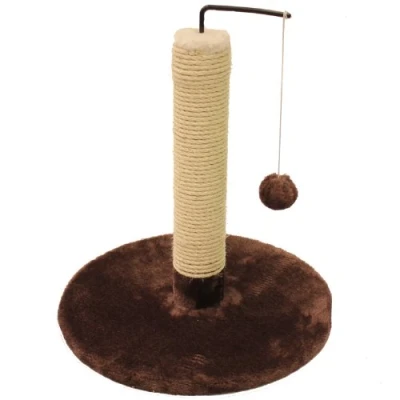 This cat scratching post is a great way for your cat to play indoors without damaging your furniture. it even has a ball on string that your cat will love clawing at. The circular base is extremely sturdy for great stability and is finished in a hardwearing brown plush fabric. Helps protect your carpets and furniture from cats natural scratching instincts whilst providing a fun and safe environment for them to play. this is suitable for cats of all ages too. Product size: 40 x 40 x 43cm