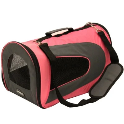 Mool Dog and Cat Pet Carrier Bag with Carry Handle Shoulder Strap, Pink/Black