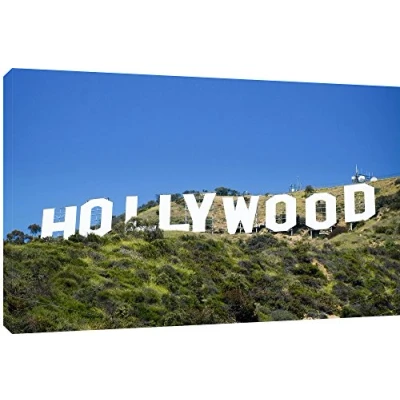 Hollywood sign in the Hollywood Hills, Los Angeles, California Quality Canvas print, hand stretched around a wooden frame, manufactured in the UK by MOOL Printed on High Quality Waterproof Canvas and coated with protective varnish to inhibit Ultra Violet fade and yellowing of your canvas Comes complete with taped backing and hanger to make mounting your canvas quick and easy Size 32” x 22” x 0.71” (81cm x 56cm x 2cm)