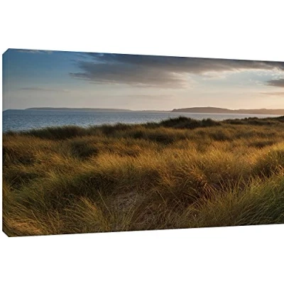 Landscape beautiful beach scene during vibrant sunset. Quality Canvas print, hand stretched around a wooden frame, manufactured in the UK by MOOL Printed on High Quality Waterproof Canvas and coated with protective varnish to inhibit Ultra Violet fade and yellowing of your canvas Comes complete with taped backing and hanger to make mounting your canvas quick and easy Size 32” x 22” x 0.71” (81cm x 56cm x 2cm)