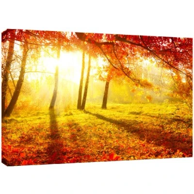 MOOL Large 32 x 22 inch Autumn Tree Forest Sunshine Canvas Wall Art Print Hand Stretched on a Wooden Frame with Giclee Waterproof Varnish Finish Ready to Hang