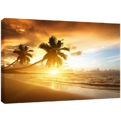 MOOL Large 32 x 22 inch Caribbean Sunset Beach Canvas Wall Art Print Hand Stretched on a Wooden Frame with Giclee Waterproof Varnish Finish Ready to Hang