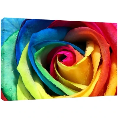 Beautiful photo of a single multi colour rose flower head with fresh water rain drops Quality Canvas print, hand stretched around a wooden frame, manufactured in the UK by MOOL Printed on High Quality Waterproof Canvas and coated with protective varnish to inhibit Ultra Violet fade and yellowing of your canvas Comes complete with taped backing and hanger to make mounting your canvas quick and easy Size 32" x 22" x 0.71" (81cm x 56cm x 2cm)