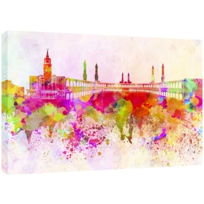 Beautiful Modern picture of the famous mecca skyline packed with variety of stunning watercolours Quality Canvas print, hand stretched around a wooden frame, manufactured in the UK by MOOL Printed on High Quality Waterproof Canvas and coated with protective varnish to inhibit Ultra Violet fade and yellowing of your canvas Comes complete with taped backing and hanger to make mounting your canvas quick and easy Size 32" x 22" x 0.71" (81cm x 56cm x 2cm)