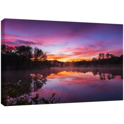 MOOL Large 32 x 22 inch Morning Sunrise Lake Canvas Wall Art Print Hand Stretched on a Wooden Frame with Giclee Waterproof Varnish Finish Ready to Hang, Purple