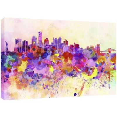 Beautiful Modern picture of New yorks famous skyline packed with variety of stunning watercolours Quality Canvas print, hand stretched around a wooden frame, manufactured in the UK by MOOL Printed on High Quality Waterproof Canvas and coated with protective varnish to inhibit Ultra Violet fade and yellowing of your canvas Comes complete with taped backing and hanger to make mounting your canvas quick and easy Size 32" x 22" x 0.71" (81cm x 56cm x 2cm)