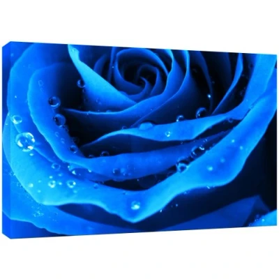 Beautiful photo of a single blue rose flower head with fresh water rain drops Quality Canvas print, hand stretched around a wooden frame, manufactured in the UK by MOOL Printed on High Quality Waterproof Canvas and coated with protective varnish to inhibit Ultra Violet fade and yellowing of your canvas Comes complete with taped backing and hanger to make mounting your canvas quick and easy Size 32" x 22" x 0.71" (81cm x 56cm x 2cm)