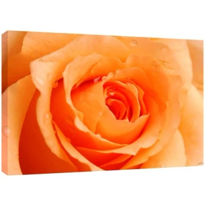 Beautiful photo of a single orange peach rose flower head with fresh water rain drops Quality Canvas print, hand stretched around a wooden frame, manufactured in the UK by MOOL Printed on High Quality Waterproof Canvas and coated with protective varnish to inhibit Ultra Violet fade and yellowing of your canvas Comes complete with taped backing and hanger to make mounting your canvas quick and easy Size 32" x 22" x 0.71" (81cm x 56cm x 2cm)