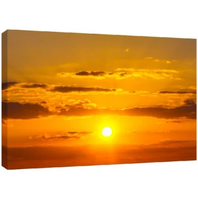 Stunning orange sunset sky scene Quality Canvas print, hand stretched around a wooden frame, manufactured in the UK by MOOL Printed on High Quality Waterproof Canvas and coated with protective varnish to inhibit Ultra Violet fade and yellowing of your canvas Comes complete with taped backing and hanger to make mounting your canvas quick and easy Size 32" x 22" x 0.71" (81cm x 56cm x 2cm)
