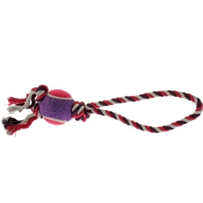 Mool Long Retrieve Rope and Ball Dog Pet Toy Play, 40 cm, Pink/Purple
