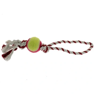Knotted style rope tug toy complete with ball. Great fun either as a throwing toy, for a game of tug of war or simply for carrying. Hardwearing colourful rope construction with loop to one end for comfort and ball. Size: 40cm (15.7 inch)