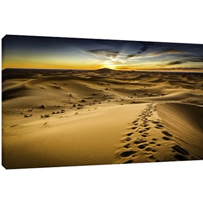 Beautiful view on a top of a Dune on Morocco Desert Quality Canvas print, hand stretched around a wooden frame, manufactured in the UK by MOOL Printed on High Quality Waterproof Canvas and coated with protective varnish to inhibit Ultra Violet fade and yellowing of your canvas Comes complete with taped backing and hanger to make mounting your canvas quick and easy Size 32” x 22” x 0.71” (81cm x 56cm x 2cm)