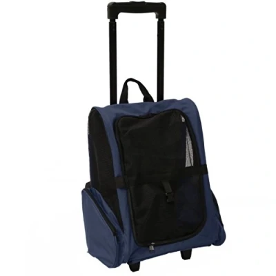Mool Pet Carrier Backpack with Integrated Trolley and Telescopic Handle, 36 x 36x49 cm, Navy Blue