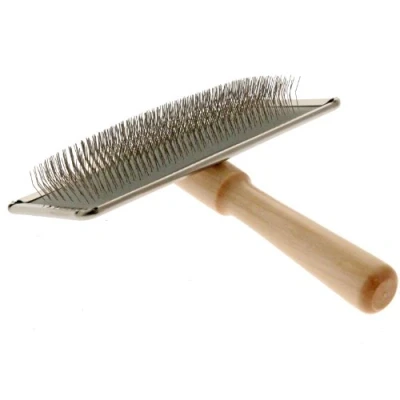Easy use medium wired slicker brush. Ideal for grooming - removes dead hair and tangles to help promote a glossy coat. Wooden handle for longevity. Size 13.8 x 11.8cm (5.4 x 4.6 inch)