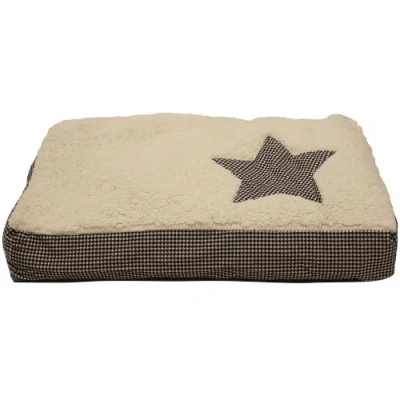 Premium rectangular cushion / mattress in a hounds tooth fabric with star motif It can be washed Can be used as a standalone cushion or as a mattress to line a suitable plastic bed Product Size: 60 x 40 x 10cm