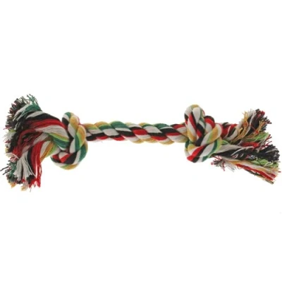 Colourful knotted style rope tug toy. Great fun either as a throwing toy, for a game of tug of war or simply for carrying. Hardwearing colourful rope construction with strong knots to either end. Size: 21cm (8.3 inch)