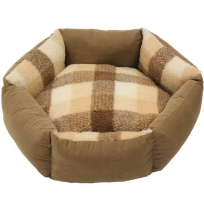 Mool Tartan hexagonal Cushioned Dog Bed, Width: 47 cm (19 inches), Light Brown