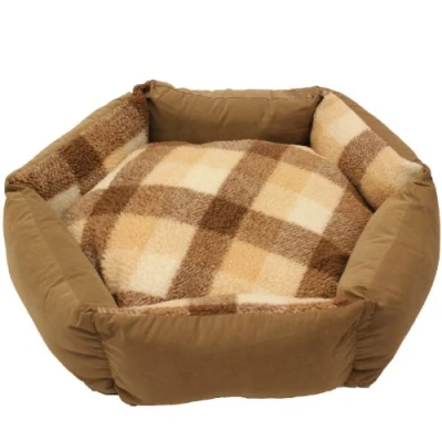 Mool Tartan hexagonal Cushioned Dog Bed, Width: 57 cm (22 inches), Light Brown