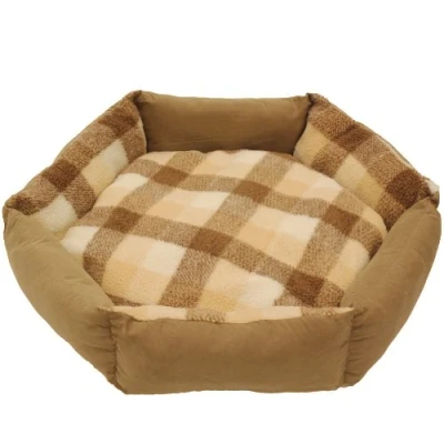 Mool Tartan hexagonal Cushioned Dog Bed, Width: 70 cm (28 inches), Light Brown