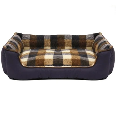 Luxurious soft and warm Berber fleece lined rectangular dog bed finished in a mixture of navy blue and tartan Highly durable and provides optimum levels of luxury and comfort that your dog needs Product Size: 70 x 60 x 20cm