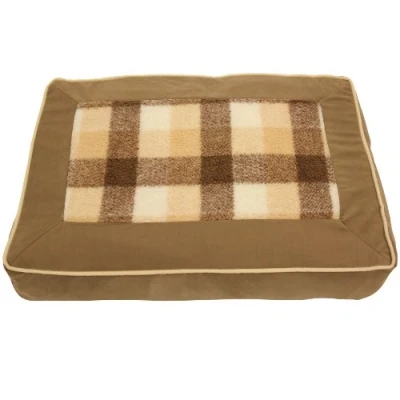 Mool Tartan Rectangular Flat Cushioned Dog Bed, Width: 60 cm (24 inches), Brown