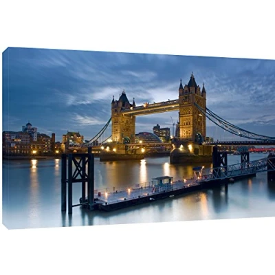 The iconic @@@9JnitkfPZd/nvN/D9D/StREn5iVLuH7w@@@ Bridge on the river Thames, seen from St. Katharine Docks, in London, England Quality Canvas print, hand stretched around a wooden frame, manufactured in the UK by MOOL Printed on High Quality Waterproof Canvas and coated with protective varnish to inhibit Ultra Violet fade and yellowing of your canvas Comes complete with taped backing and hanger to make mounting your canvas quick and easy Size 32” x 22” x 0.71” (81cm x 56cm x 2cm)