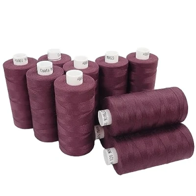 Moon Thread Burgundy Spun Polyester Sewing 1000M, Set of 10