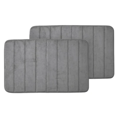 Moonlight Bedding 2 Pack Bath Mat Non Slip Anti Mould Grey 50 x 80 cm Memory Foam Bathmat Thick Super Soft and Comfortable Mats Washable & Water Absorption Bathroom