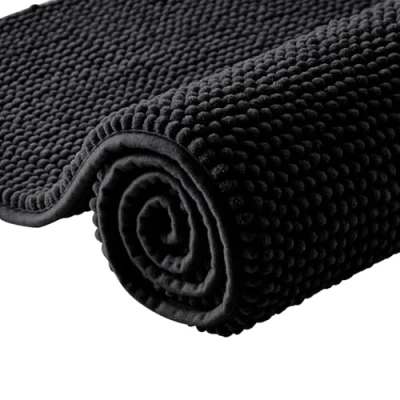 Moonlight Bedding Bath Mat Non Slip Anti Mould Chenille Shower Black 40 x 60 cm Super Absorbent Bathroom Machine Washable Extra Soft Fluffy Bathmat