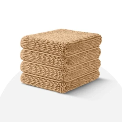 Moonlight Bedding Beige Bath Mat Non Slip Anti Mould (4 pack) Machine Washable Mats 40x60cm Chenille Bathroom Super Absorbent Extra Soft Fluffy Shower